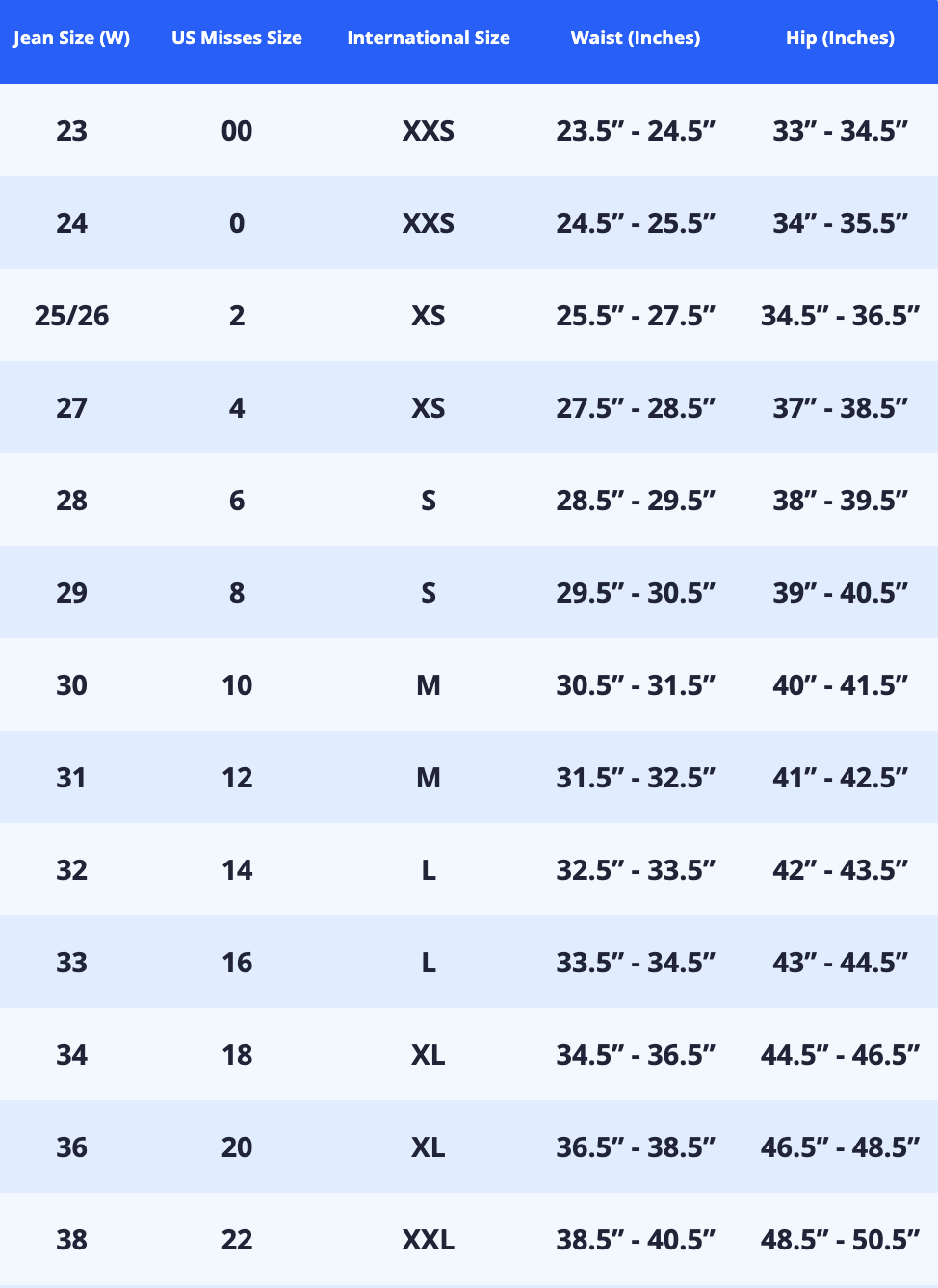 Sizing Chart